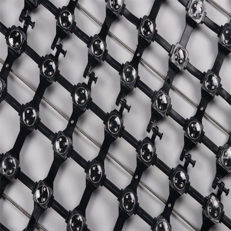 La cortina de malla LED utiliza una estructura única de malla LED, que se compone de módulos LED individuales que están interconectados y pueden personalizarse según el tamaño y la forma deseados.Este diseño flexible y ligero permite una fácil instalación y mantenimientoTambién tiene una serie de características únicas, incluyendo niveles de iluminación ajustables, una amplia gama de opciones de color,y la capacidad de crear imágenes estáticas y dinámicas.